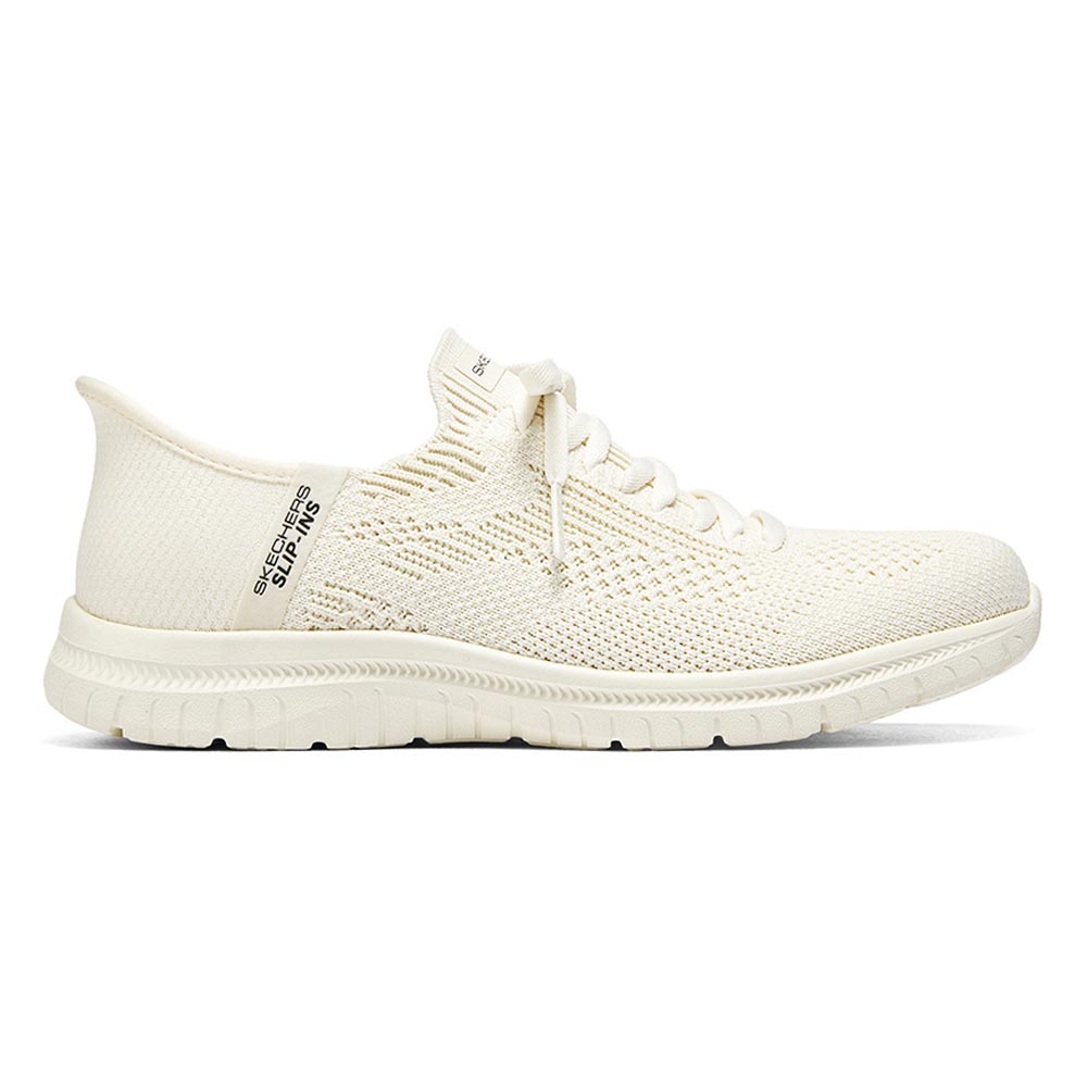 Step into effortless comfort with Skechers Hands Free Slip-ins®: Virtue - Divinity. Designed with our exclusive Heel Pillow™, this vegan style features a Stretch Fit® engineered knit upper with fixed laces, plus a cushioned Skechers Air-Cooled Memory Foam® insole.